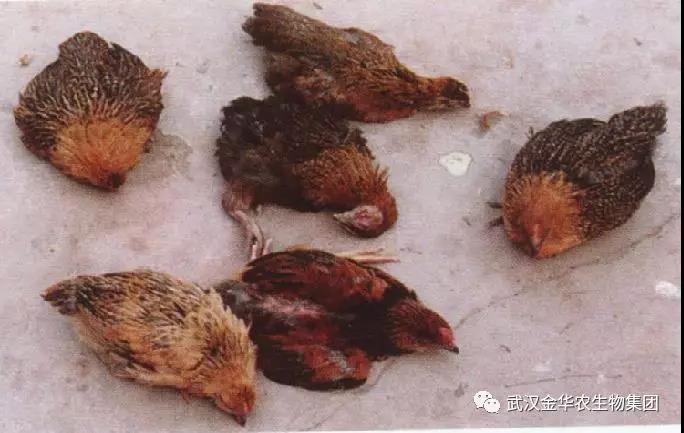 小雞一甩鼻,流清鼻液,不是好現象,這就是第一階段,要早下藥,解表治療。用什么藥好呢,最好用退燒藥,解表就可以。雞無汗腺,我們不是讓雞出汗,而是讓雞表皮毛細血管擴張,血流加快就能把熱量帶走,就可退燒。高熱病毒靈、凈樂舒、黃金多維C,都是最好的選擇藥品。