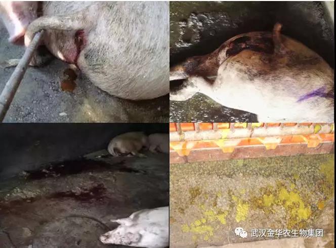 仔豬血性下痢由豬痢疾密螺旋體引起,主要以斷奶后仔豬發病多,而哺乳仔豬發病較少。本病流行較緩。b..初生仔豬(3日齡內)出現血性下痢,并且發病急,整窩死亡,這是魏氏梭菌引起病癥特征. 寄生蟲如鞭蟲等病、霉玉米中毒或嚴重缺硒、鋅也可發生拉血糞。糞黑紅到煤黑色:為食道、胃或腸出血。喂細玉米面多的肉豬有的很快死亡,白豬死后皮膚蒼白可由胃食道區潰瘍造成的急性胃出血或區域性腸炎引起,使用球蟲拉稀藥組合“藍圓瘟毒克+氟泰肺寧+華農樂健+弓球痢康”,可以很好解決這個問題。