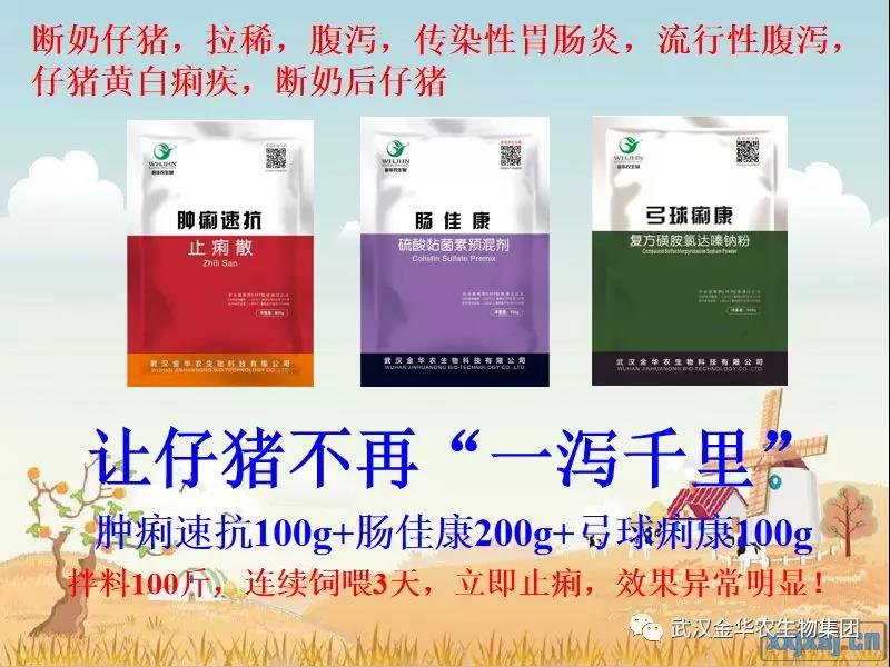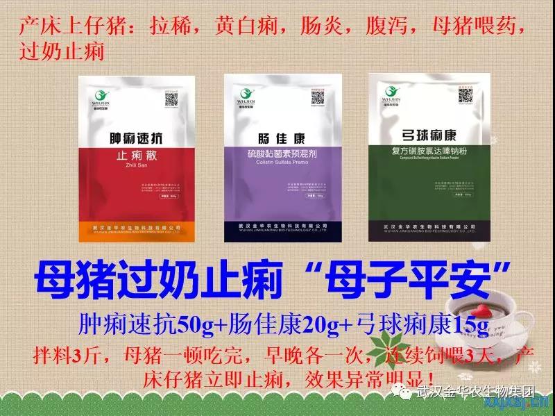 產床上仔豬:拉稀,黃白痢,腸炎,腹瀉,母豬喂藥,過奶止?。耗[痢速抗50g+腸佳康20g+弓球痢康15g,拌料3斤,母豬一頓吃完,早晚各一次,連續飼喂3天,產床仔豬立即止痢,效果異常明顯!