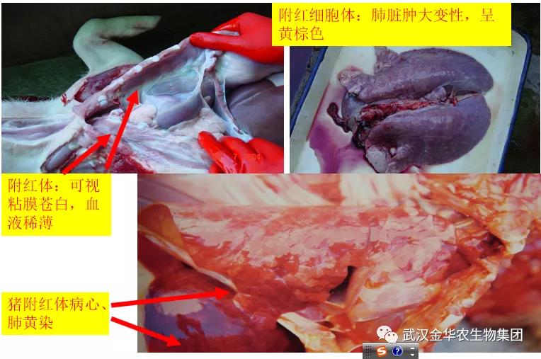 總結:該病的主要特點是貧血、黃疸、呈稽留熱(打針就吃食,不打針就繼續發熱)。針狀出血點;發病早期皮膚發紅,后期蒼白(貧血造成),最后發黃,出現黃疸,消瘦,尿液從黃色最后變為醬油色(溶血造成)。