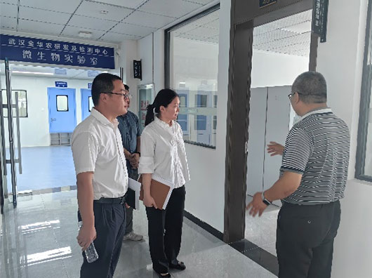 ? ? ? ?政府金融機構劉處長、宋主任,高行長一行,前往我司項目基地考察,參觀了解微生物實驗室、國家GMP車間、質量檢測中心、研發試驗中心建設情況,十分稱贊,并祝賀武漢金華農企業快速發展壯大。公司運營主管郭昌盛向領導一行介紹了公司在企業文化、技術體系、市場拓展、品牌建設等方面取得的成績。