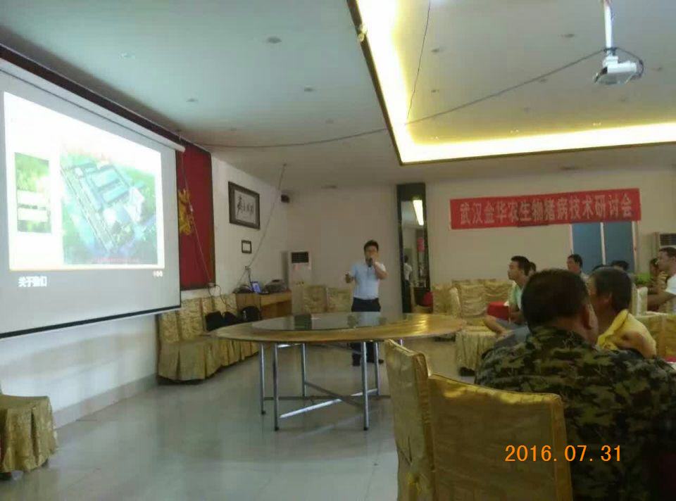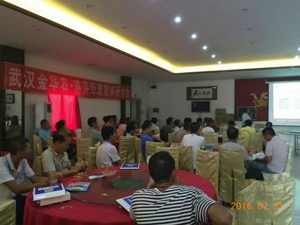 2016年7月12-31日,武漢金華農生物科技有限公司在廣東全省境內成功舉辦6場多形式豬病交流座談會,其中在“揭陽”、“遂溪”兩地成功召開兩場規模化養殖場豬病研討會議。雖然天氣有些炎熱,但絲毫沒有阻擋廣大養殖戶來武漢金華農會場聽課學習的熱情,向華中農業大學豬病專家咨詢交流的決心。公司7月廣東兩場豬病會議召開十分成功,收到良好的效果,達到預期目的。