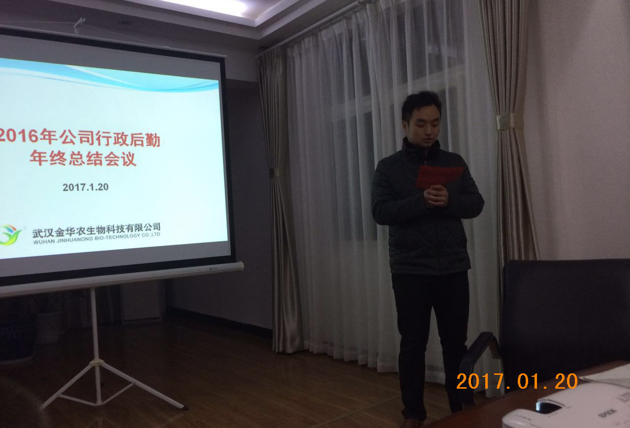 1月20日,公司2016年行政后勤年終總結表彰及2017新年工作部署會議在華中農業大學產業大樓會議室隆重召開,公司領導、各部門負責人及員工代表參加會議,總結表彰優秀,并為新一年的工作部署規劃,統一思想、明確方向。