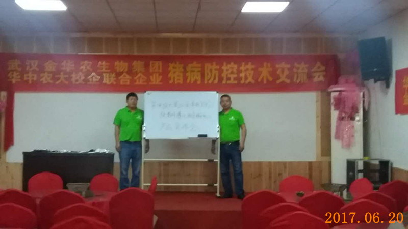 武漢金華農生物貴州遵義豬病研討交流會議于6月20號圓滿成功召開,此次會議由大區負責人譚經理組織與主辦,技術部原老師主講,會議著重研與交流了夏季豬易發病和多發病的防控與治療,其中仔豬黃白痢疾、腸炎、腹瀉,母豬的常規保健,夏季附紅細胞體病,霉菌毒素的凈化與防控等仍然是養豬戶夏季豬病永恒不變的問題。