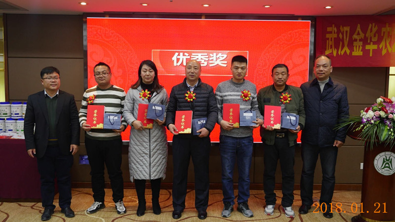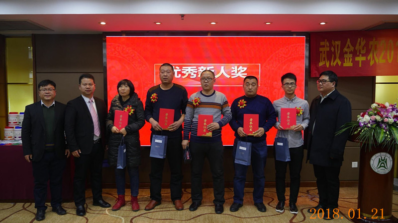 2018年1月20日,武漢金華農公司秉承一貫“惜才、愛才、培養、拔高、貢獻”的人才理念,對全年市場銷售優秀工作者進行了大力表彰,各路市場精英迎來了屬于他們的肯定和榮耀!公司行政、市場近百人團隊分享了他們的喜悅與自豪,既為市場精英們歡呼鼓掌,也為自己的努力而叫好,新的一年,讓我們向行業標桿們看齊,勇往直前,爭當第一!