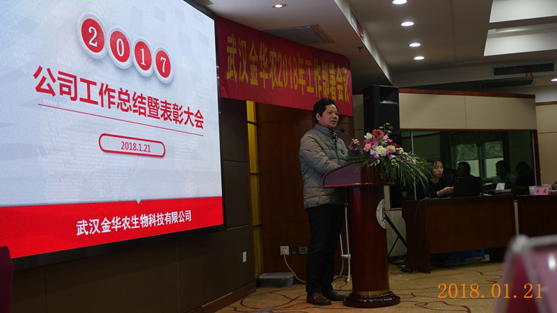2018年1月20日~24日,武漢金華農(nóng)生物科技有限公司2017年度工作總結(jié)暨表彰大會,在華中農(nóng)業(yè)大學(xué)隆重勝利召開,學(xué)校、院系領(lǐng)導(dǎo)、博士生導(dǎo)師、教授專家、公司高層、全國21個省市的精英代表齊聚盛會,百人團(tuán)隊學(xué)習(xí)交流、總結(jié)經(jīng)驗、表彰先進(jìn)、規(guī)劃未來。