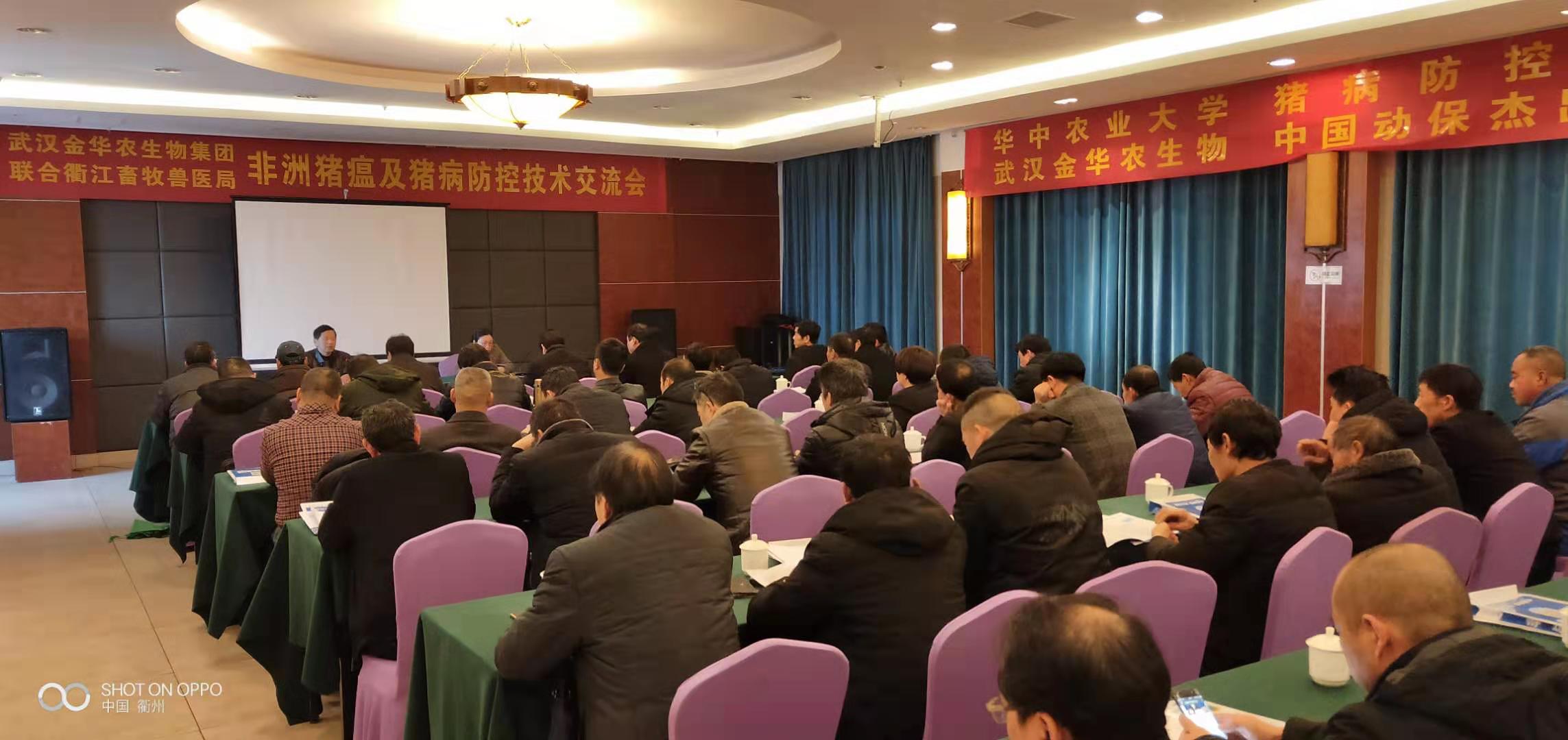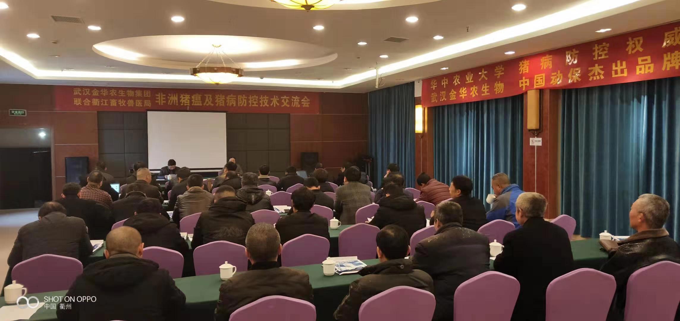 2019年3月3日,武漢金華農生物集團“第3場”《非洲豬瘟暨春季豬病防控研討會 》在浙江衢江地區(qū)勝利召開!本次會議受到浙江衢江畜牧局的大力支持與高度肯定!聽課豬場人數(shù)70多人,會議達到預期目的,豬病知識授課圓滿,養(yǎng)豬戶學習積極認真。公司市場運營部郭昌盛老師參加本次會議,技術部吳志良老師負責主講,大區(qū)負責人張志龍經理負責組織與策劃。