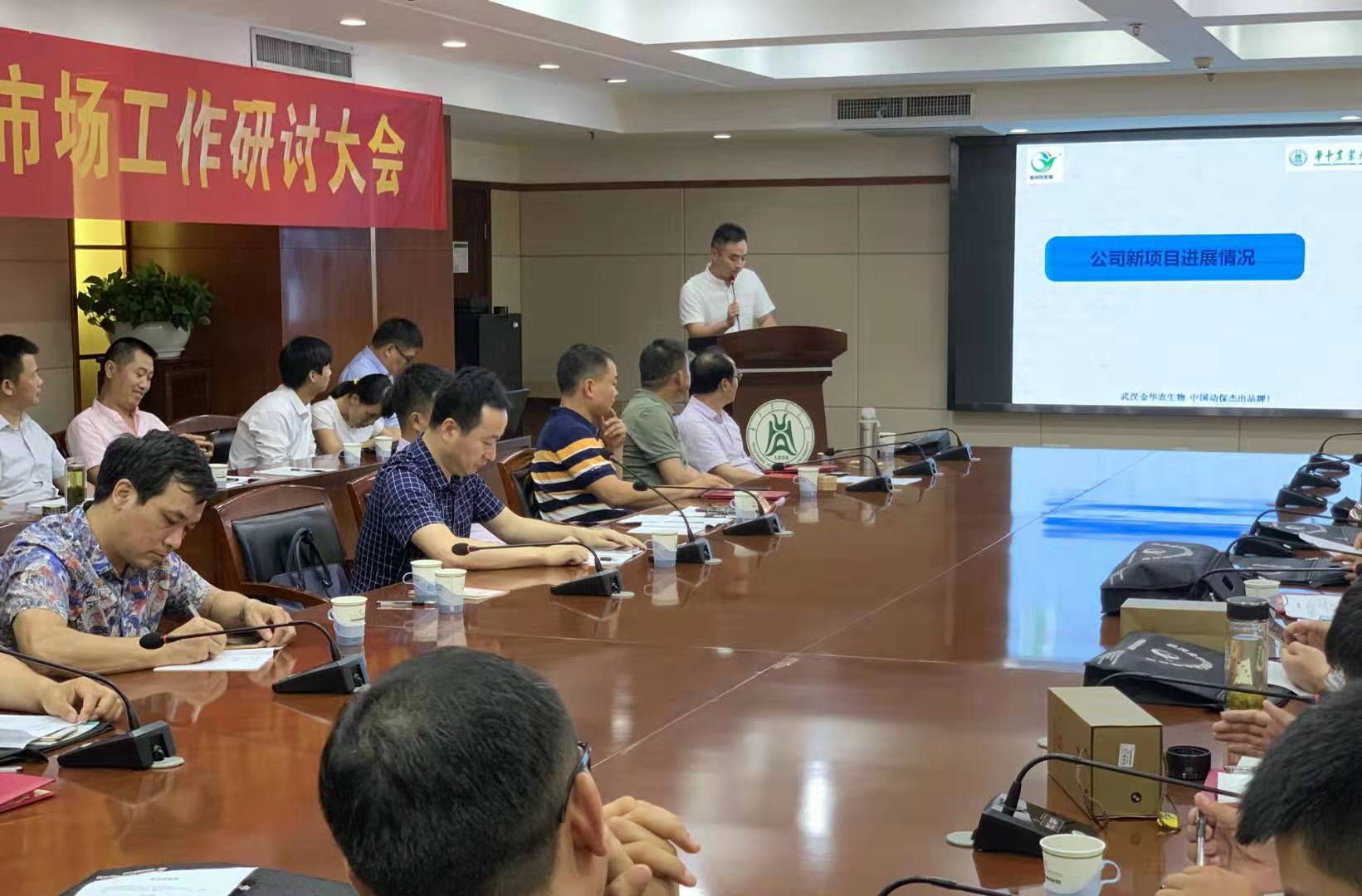 2019年7月19日~22日,武漢金華農生物集團公司2019年市場工作研討大會在華中農業大學國際學術交流中心召開,來自全國各省市動保臨床一線的資深技術導師和精英市場代表們,就非瘟形勢下動保企業的“科學應對”與“責任擔當”展開深入討論,會議取得一系列交流成果。