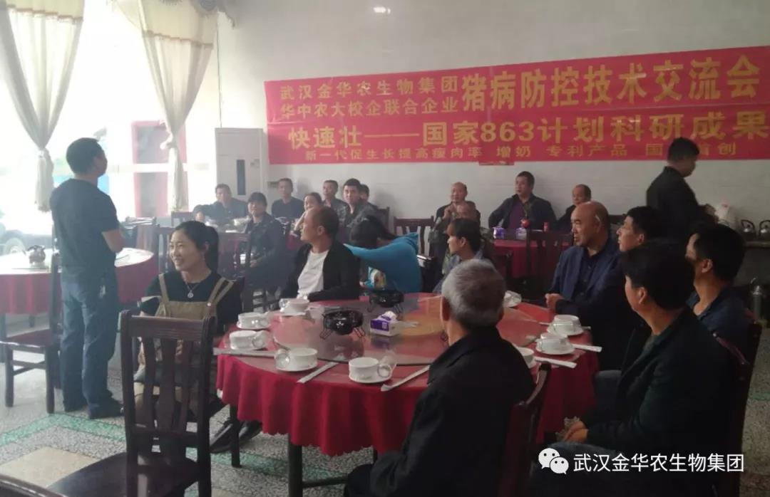 2020年5月15~18日,武漢金華農(nóng)生物集團“夏季豬病防控技術(shù)交流圓桌會”暨“快速壯”“肥豬增重促生長,母豬提免增奶”成果交流在湖南益陽勝利召開,這是公司2020年第一次連續(xù)3場豬病防控會議,取得圓滿成功!科技下鄉(xiāng)到村,以養(yǎng)豬示范村為單位,開展豬病防控知識普及,武漢金華農(nóng)生物開創(chuàng)新模式!來自當(dāng)?shù)氐?0位豬場養(yǎng)殖領(lǐng)頭人,與公司技術(shù)專家姚教授,趙教授,技術(shù)指導(dǎo)原老師,湖南大區(qū)負責(zé)人張經(jīng)理,開展了專項座談交流會議。